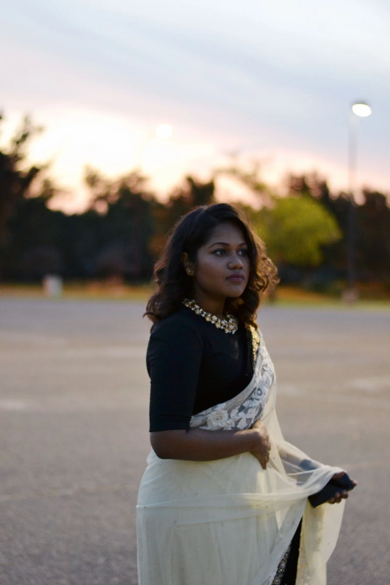 Day 1. Instead of full blown Desi clothes, I decided to try fusion. Plain saree from Fashion Village (Scarborough, Ontario). Crop top from Forever 21.
